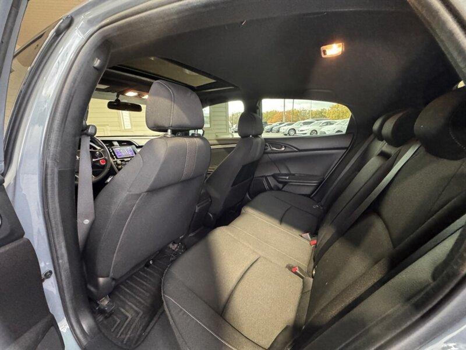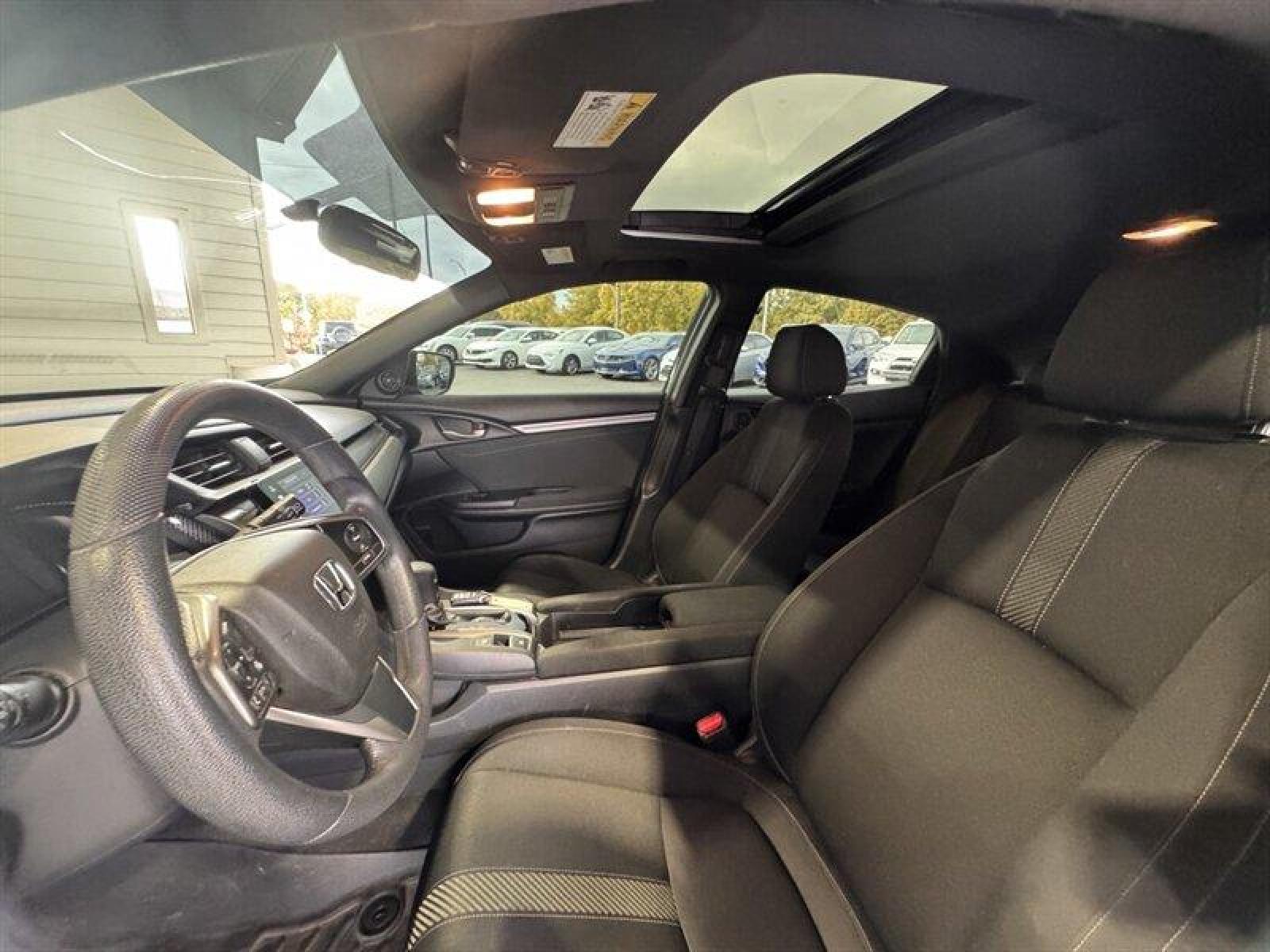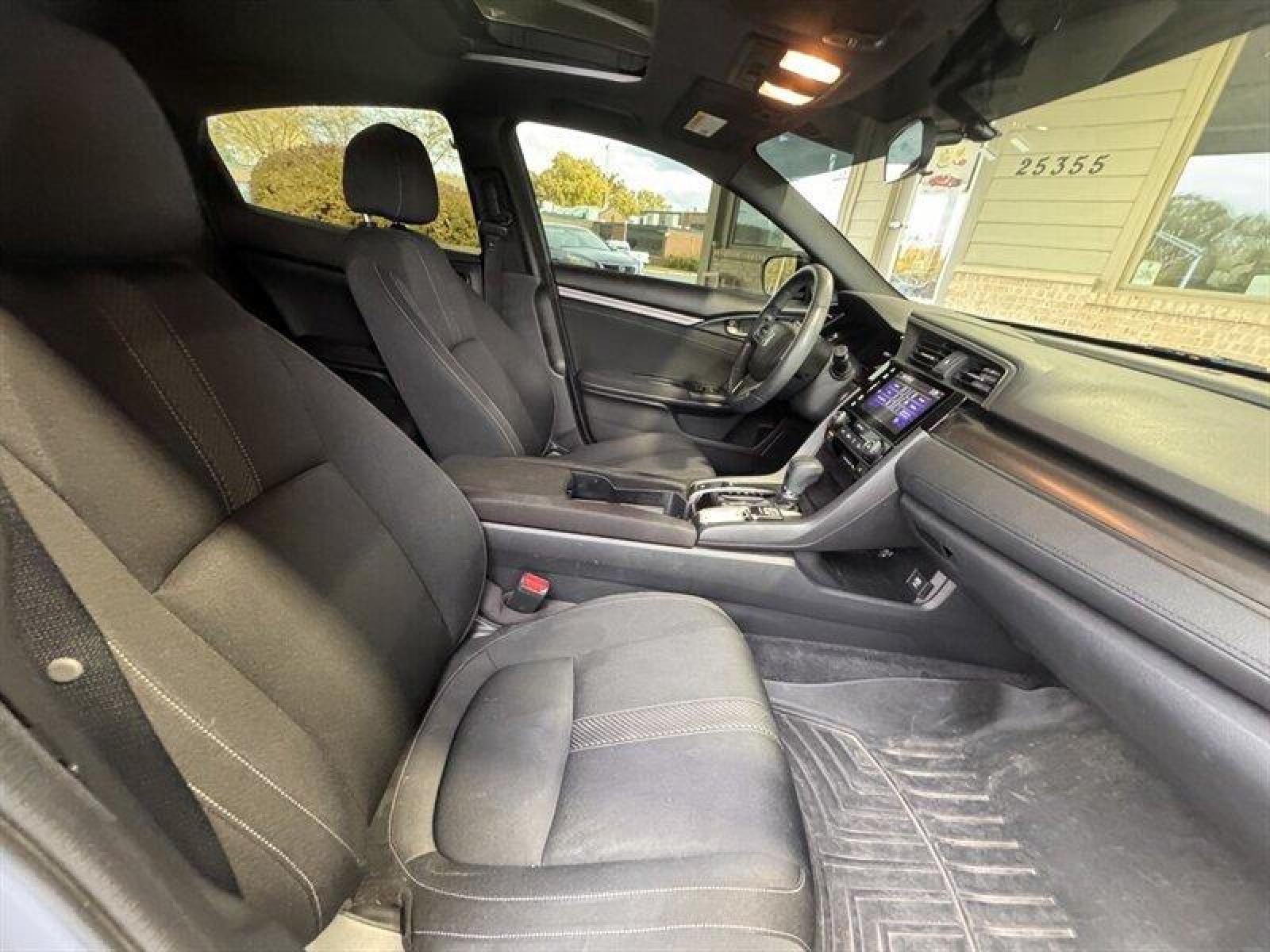 Introducing the 2017 Honda Civic EX, a standout in the compact sedan segment known for its blend of efficiency, performance, and comfort. This model is powered by a 1.5L Turbocharged Inline-4 engine, delivering 174 horsepower and 162 ft-lbs of torque, ensuring a dynamic driving experience while maintaining impressive fuel efficiency. The Civic EX achieves an estimated 31 MPG in the city and 40 MPG on the highway, making it an excellent choice for both urban commuting and long-distance travel. The exterior of this Civic is finished in a striking Sonic Gray Pearl, adding a sleek and modern touch to its overall design. This color is complemented by aerodynamic lines and a sporty stance, giving the vehicle an appealing presence on the road. Inside, the cabin features a sophisticated Black/Ivory interior that balances comfort and style. The spacious layout offers ample legroom for both front and rear passengers, ensuring everyone enjoys the ride. The Civic EX comes equipped with a range of factory default features designed to enhance your driving experience: - **Infotainment System**: The 7-inch Display Audio touchscreen provides easy access to your favorite apps, music, and navigation. It includes Apple CarPlay and Android Auto compatibility, allowing seamless integration with your smartphone. - **Audio System**: Enjoy an exhilarating audio experience with a 180-watt audio system featuring 8 speakers, ensuring clear sound quality for your listening pleasure. - **Climate Control**: The dual-zone automatic climate control allows you and your passengers to set individual temperature preferences for a comfortable ride. - **Safety Features**: The Honda Sensing suite includes advanced safety technologies such as Collision Mitigation Braking System, Road Departure Mitigation System, Adaptive Cruise Control, and Lane Keeping Assist System, providing peace of mind on every journey. - **Seating**: The Civic EX features comfortable and supportive cloth seats, with the driver's seat equipped with a 6-way power adjustment for personalized comfort. - **Convenience**: Keyless entry and push-button start enhance convenience, while the multi-angle rearview camera provides added safety and ease of parking.